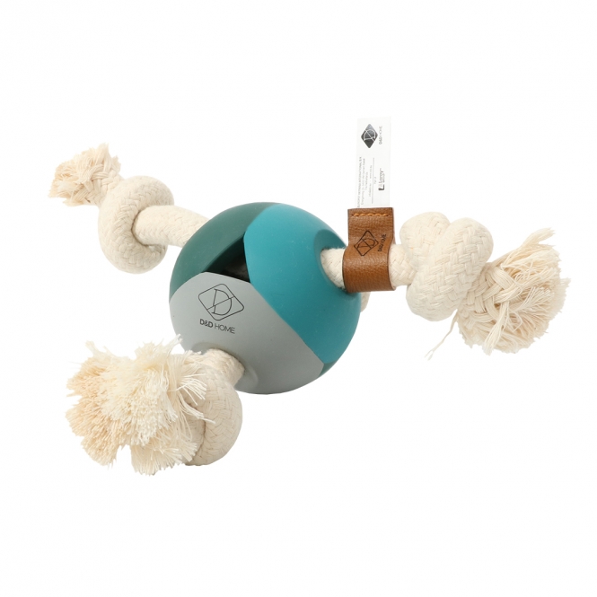Das D&D Hundespielzeug Levi ist ein robuster Naturkautschukball mit einem Baumwollseil. Das Baumwollseil ist das beliebtes Kaumaterial für Hunde und pflegt zudem Zähne und Zahnfleisch. Dieses Spielzeug ist ideal für Apportier- und Zerrspiele.