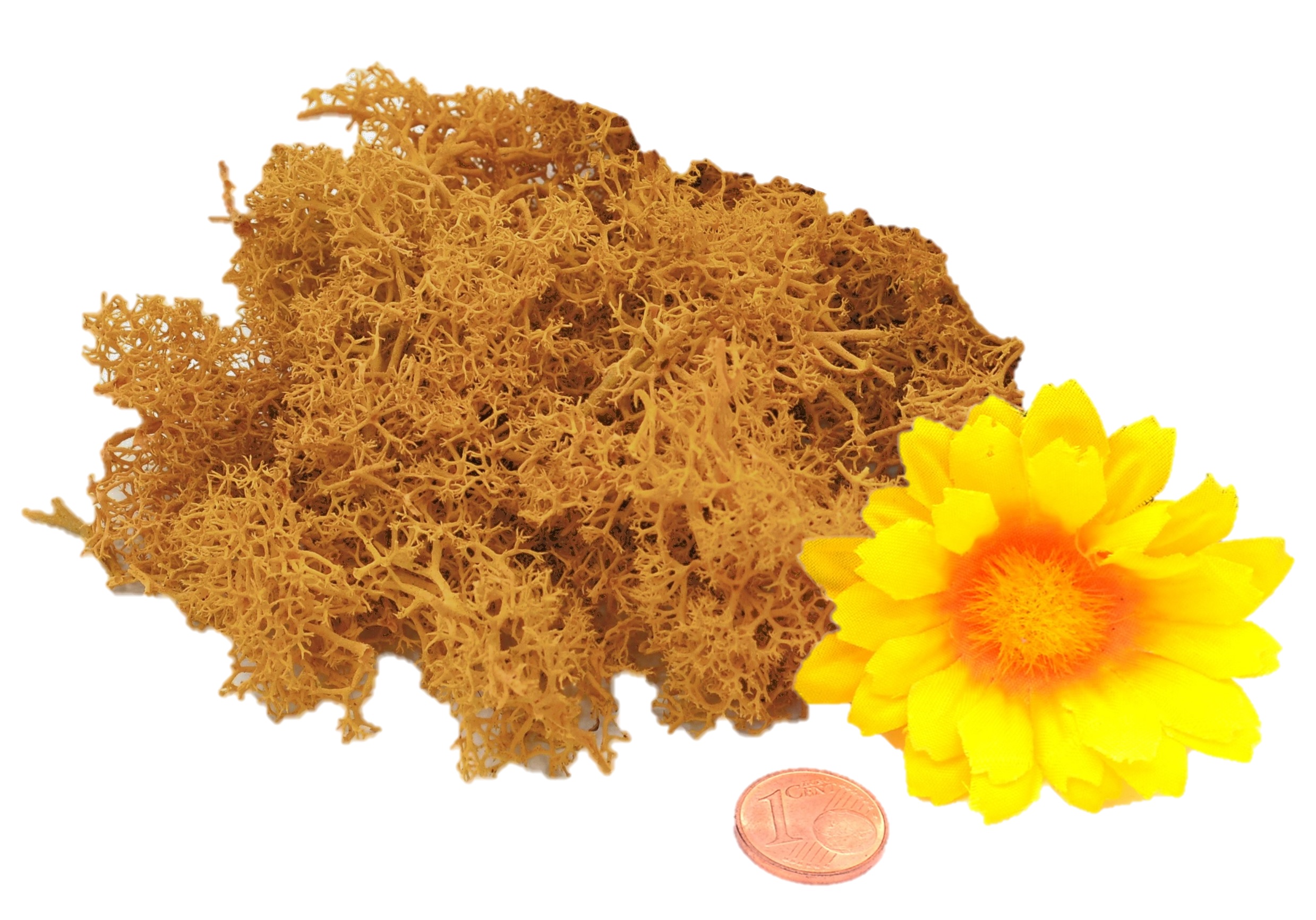 Muwse Islandmoos Melonengelb händisch gerupft, gefärbt, präpariert und 2-fach handgereinigt.