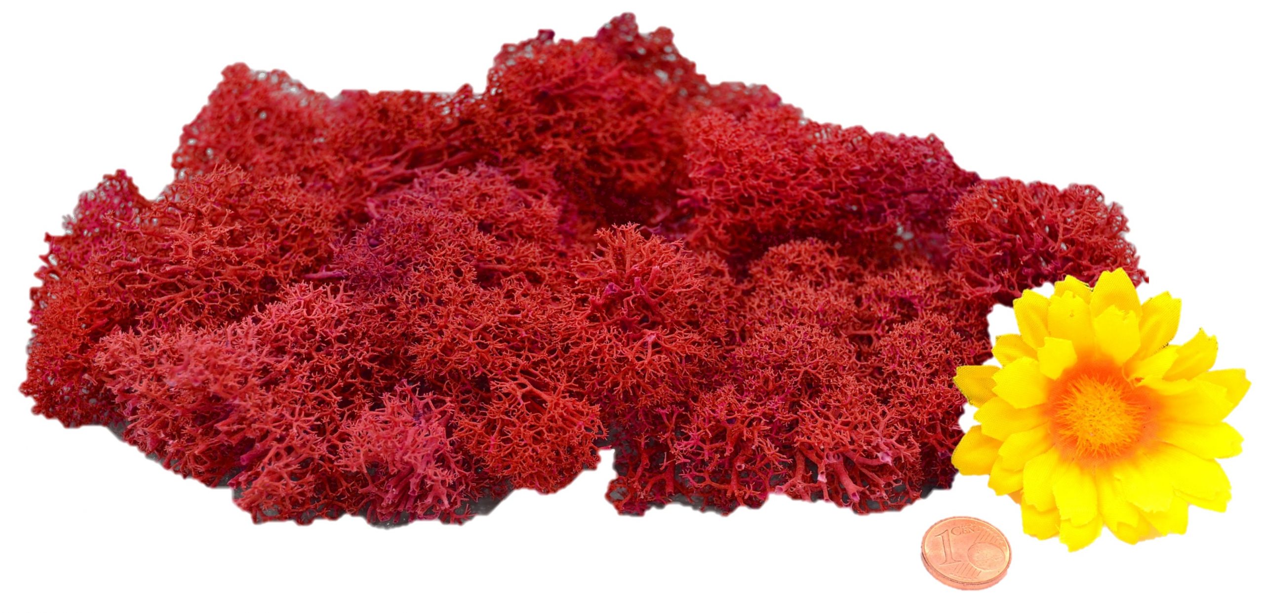 Muwse Islandmoos Mohnrot händisch gerupft, gefärbt, präpariert und 2-fach handgereinigt.