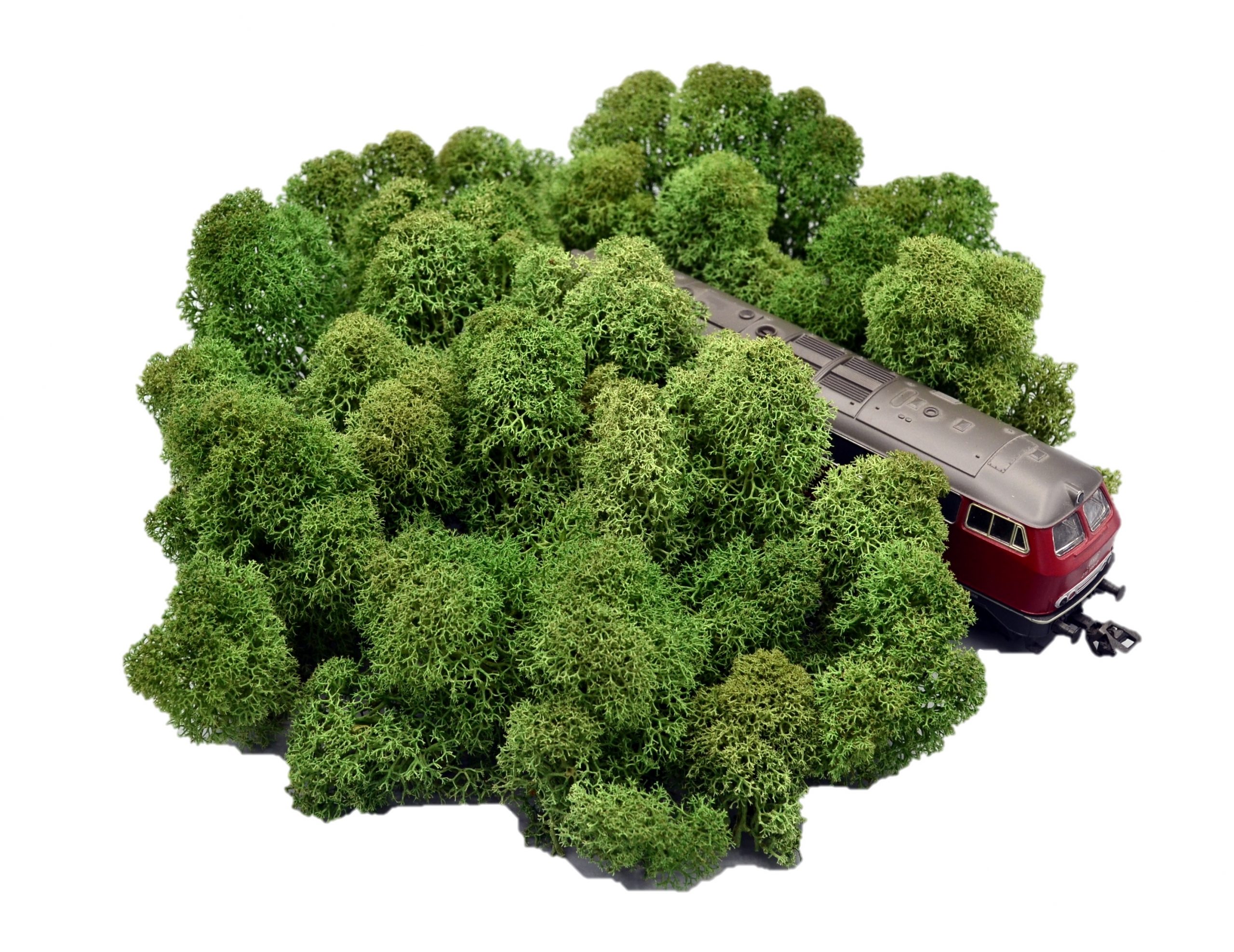Muwse Islandmoos Tannengrün passend zu Spur H0, gefärbt, präpariert und 2-fach handgereinigt.