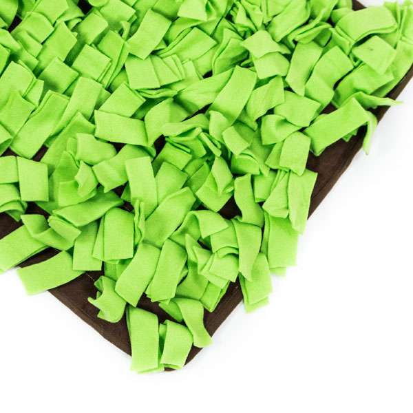 Auf der ca. 50 x 50 cm großen Matte werden Leckerlis oder auch gleich ganze Trockenfutter-Mahlzeiten zwischen den „Grashalmen“ aus Stoff versteckt, die der Hund sich mit Freude erschnüffeln wird. Die Schnüffelwiese ist mit einem Anti-Rutsch-Belag bestückt und ist waschmaschinenfest.